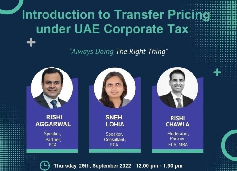 𝐏𝐫𝐞𝐦𝐢𝐞𝐫 𝐁𝐫𝐚𝐢𝐧𝐬 𝐜𝐨𝐧𝐝𝐮𝐜𝐭𝐞𝐝 𝐚 𝐰𝐞𝐛𝐢𝐧𝐚𝐫 𝐨𝐧 Introduction to Transfer Pricing under UAE Corporate Tax – (29 Sep 2022)