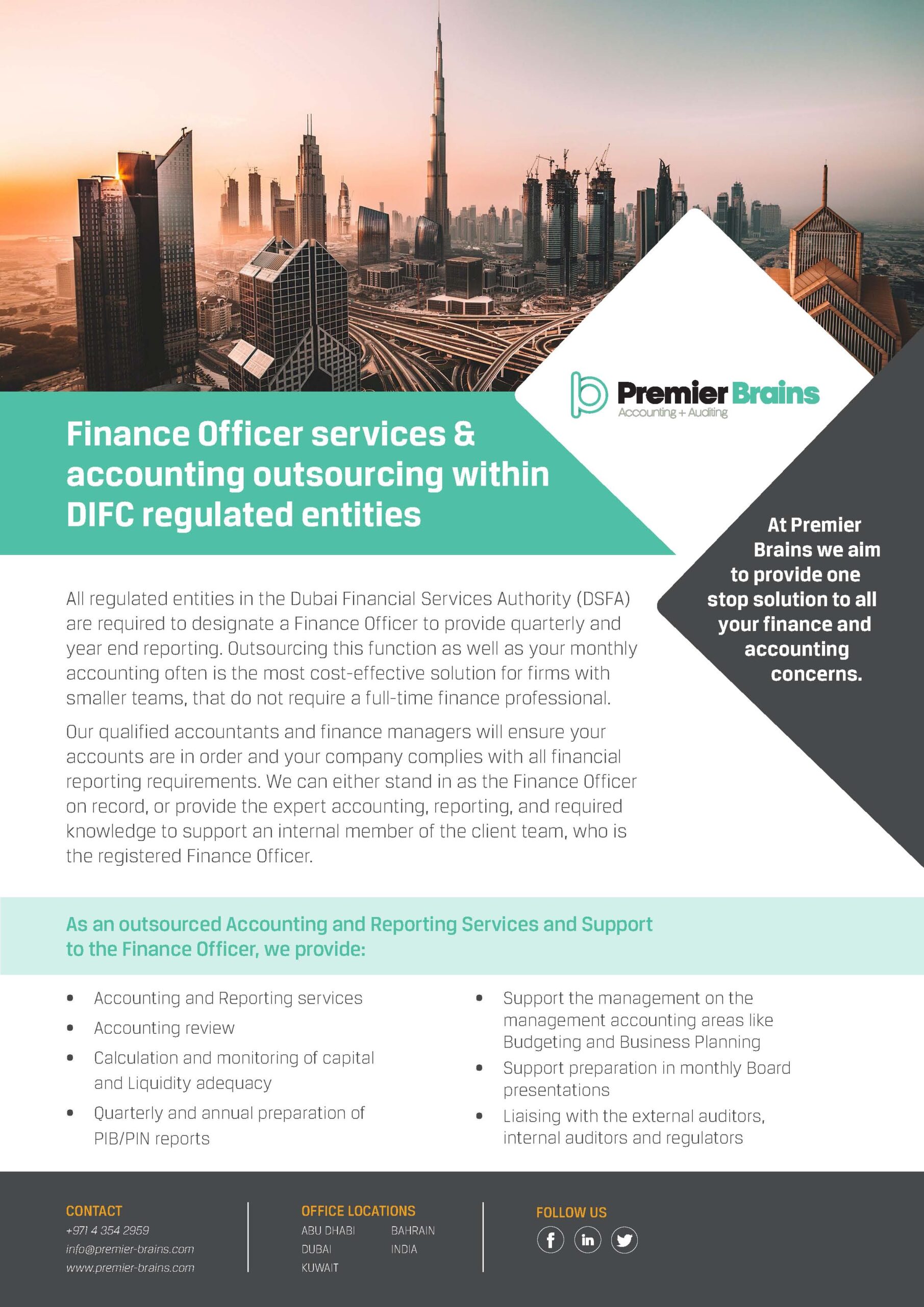 Drop us an email at info@premier-brains.com to know how we can make a difference by providing outsourced accounting & finance officer services to DIFC entities.